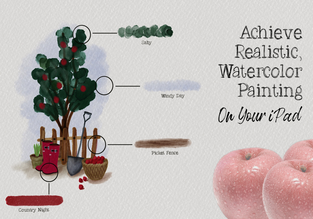 Autumn is almost upon us. Time for rides in the country, apple pies & harvest season! Perfect weather to cozy up with your iPad and Country Rustic has all the brushes to create beautiful watercolor art.